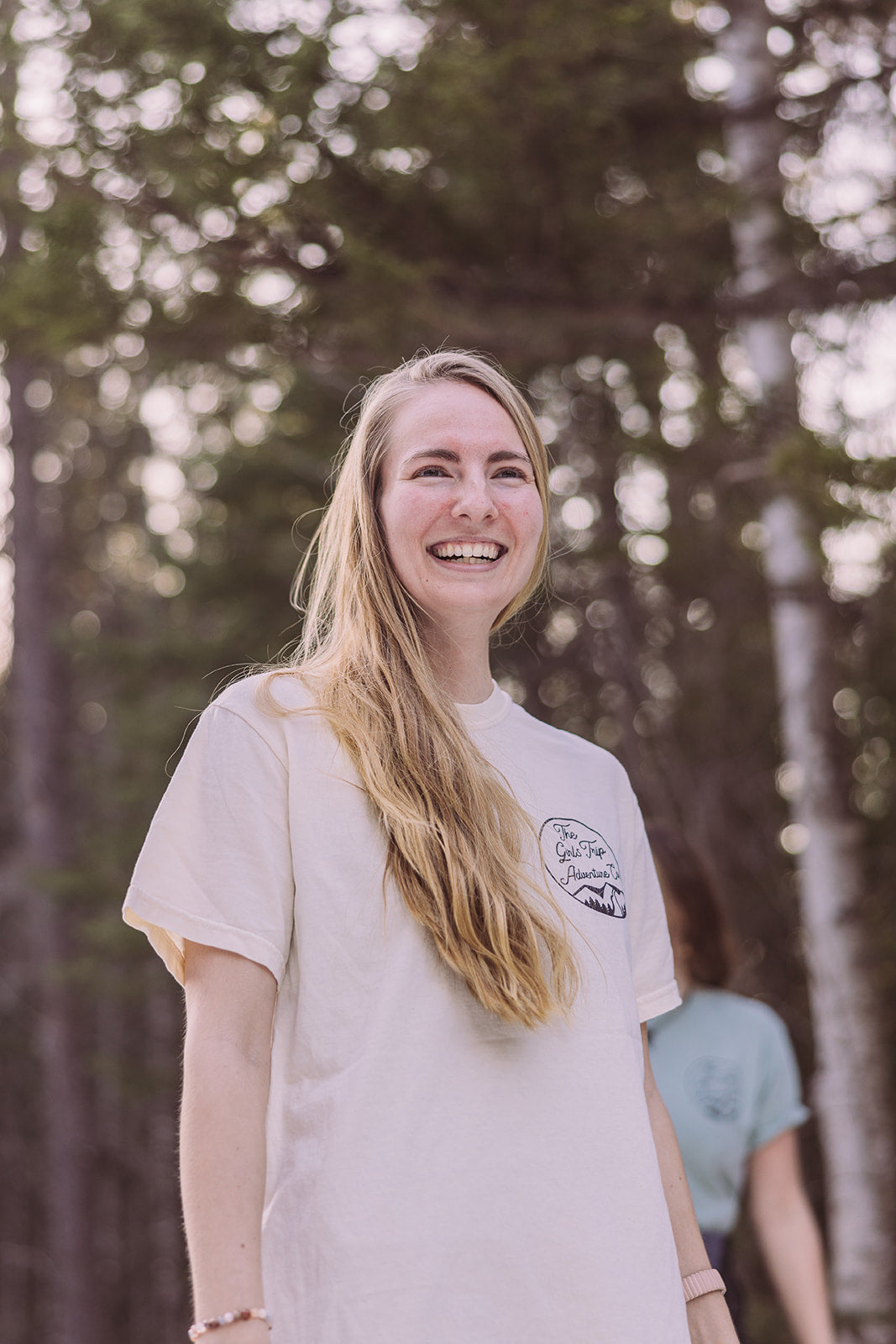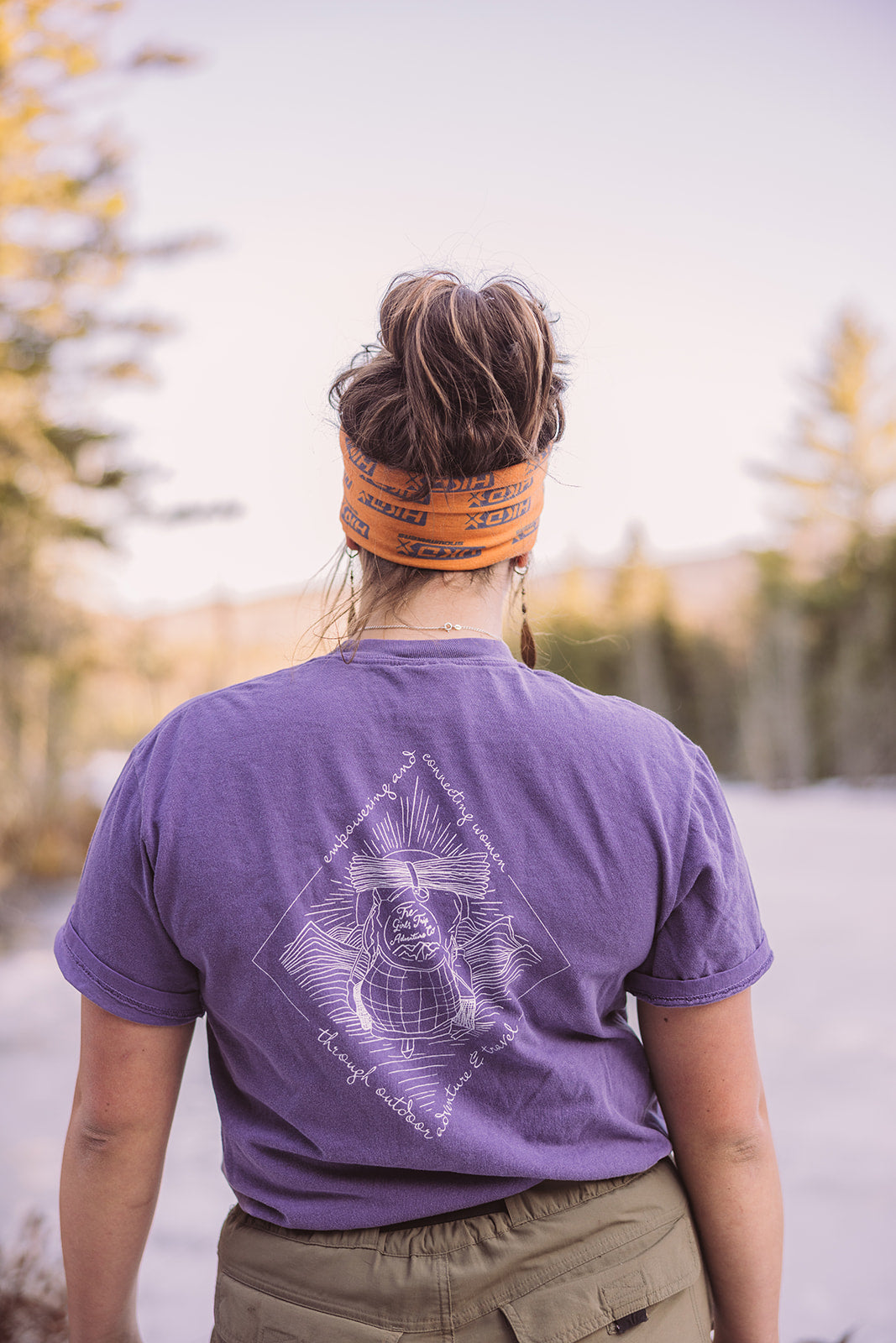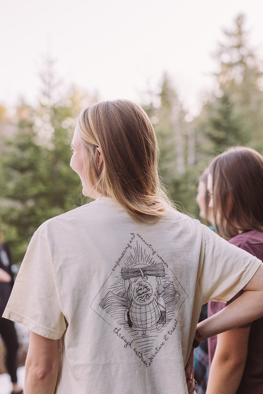 Short sleeve Comfort Colors® t-shirt with round The Girls Trip Adventure Co. logo on front and backpack logo on back.